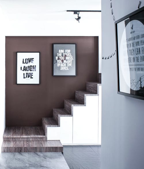 Designed to complement any home decor, brown and all its colour iterations make a sensible choice for painting any part of your interior. As seen here, interior design firm Distinct Identity SG trickles the stairway with a mouth-watering chocolate-brown wall that goes well with the brown marble stone flooring.