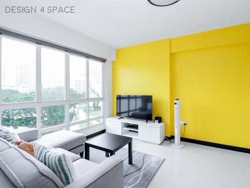 This pop-inspired and bubbly living room designed by Design4Space SG exudes the style and confidence of its owners. With its crisp lines and minimalist aesthetic, the interior is punctuated by the lively colour of yellow gleaming with modern appeal.