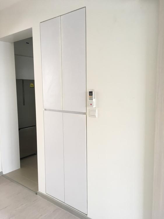 Oh i installed curtain between living room and foyer to contain air (from either ceiling fan or air-conditioner) inside living room. Secondly, it acts as "kitchen door" while cooking.. 3rd reason is for privacy when i open main door during daytime for ventilation. Still testing it to see if it, esp 2nd reason, works or not. At first, I asked for sliding partially-frosted glass door enclosed inside storage cabinet at that spot but I dropped it since it costs about $4K. I may install just sliding door ($1.6K) in future if necessary.