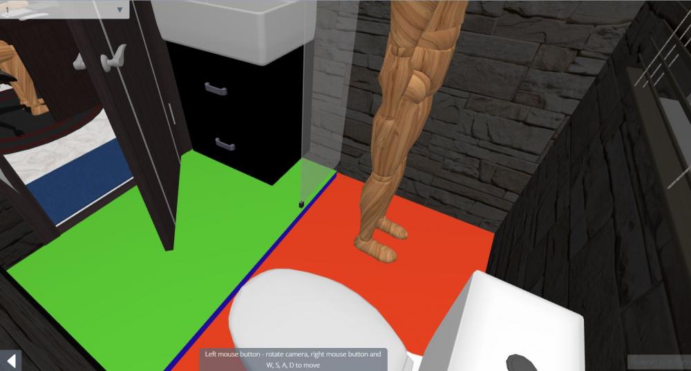 Red area is my Wet Area which is slightly lower in order to trap the water to be able to drain away when I shower.