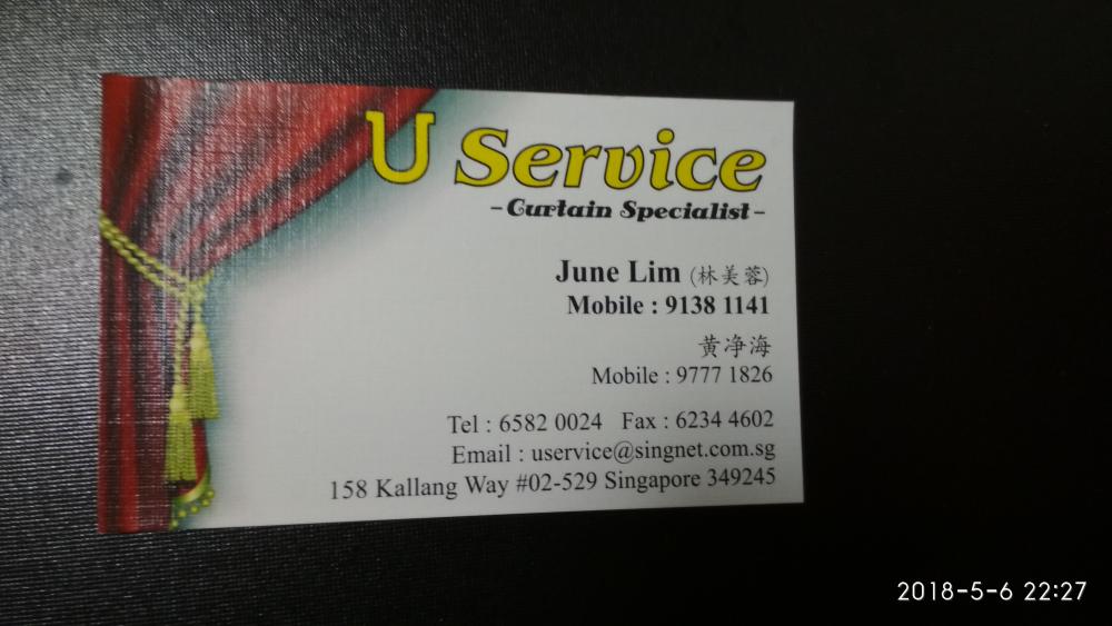 Seems a lot of pple are asking for contacts of U service curtains and blinds. I have just engaged them and post here their name card and details