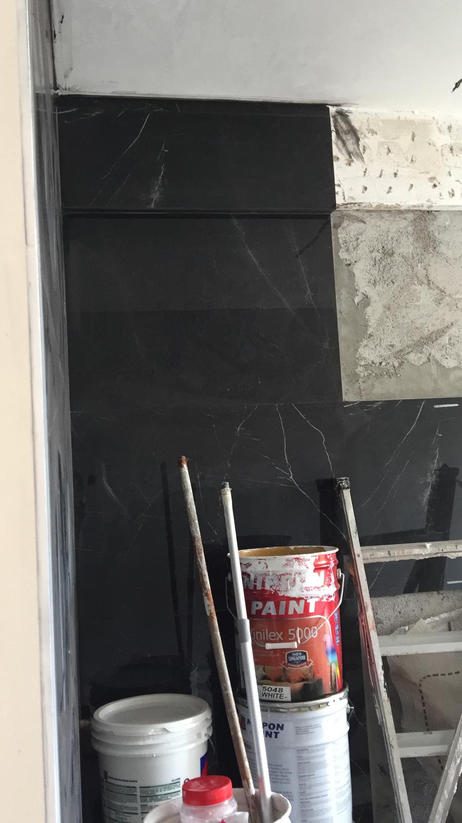 We initially wanted just the back splash to be black. But our ID said, make it floor to ceiling at the end. Whole wall with the senso nero marquina tile! One of the benefits of having a proactive ID! ideas we never have thought about!